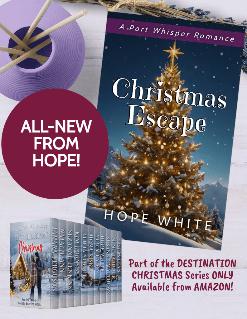 CHRISTMAS ESCAPE – one of eleven NEW holiday romances in the DESTINATION CHRISTMAS Series. Available on AMAZON. CLICK HERE.